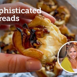 A flaky puff pastry topped with sweet, caramelized onions, creamy crumbled goat cheese, and toasted walnuts. Perfect as a cozy holiday appetizer or an easy, elegant snack.