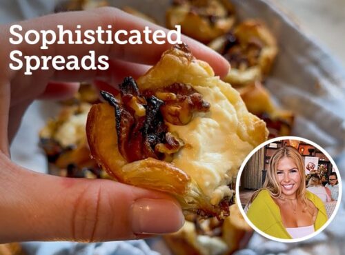 A flaky puff pastry topped with sweet, caramelized onions, creamy crumbled goat cheese, and toasted walnuts. Perfect as a cozy holiday appetizer or an easy, elegant snack.